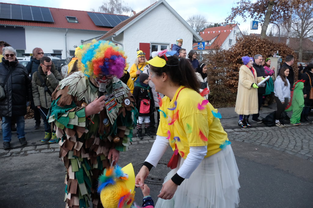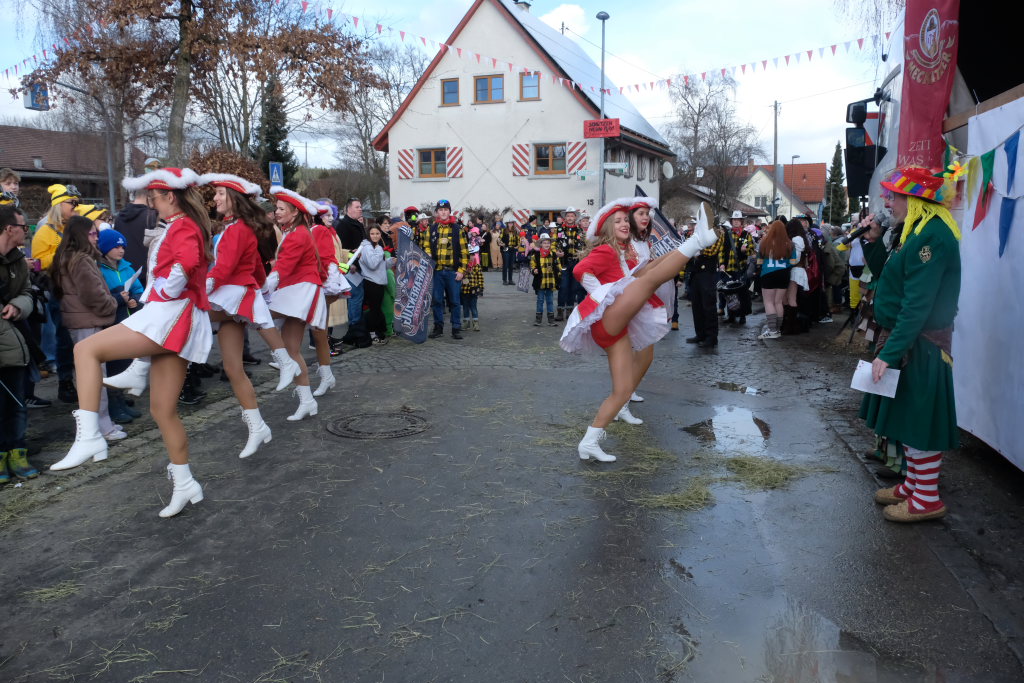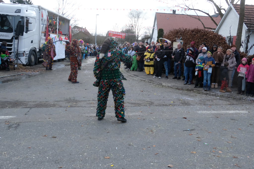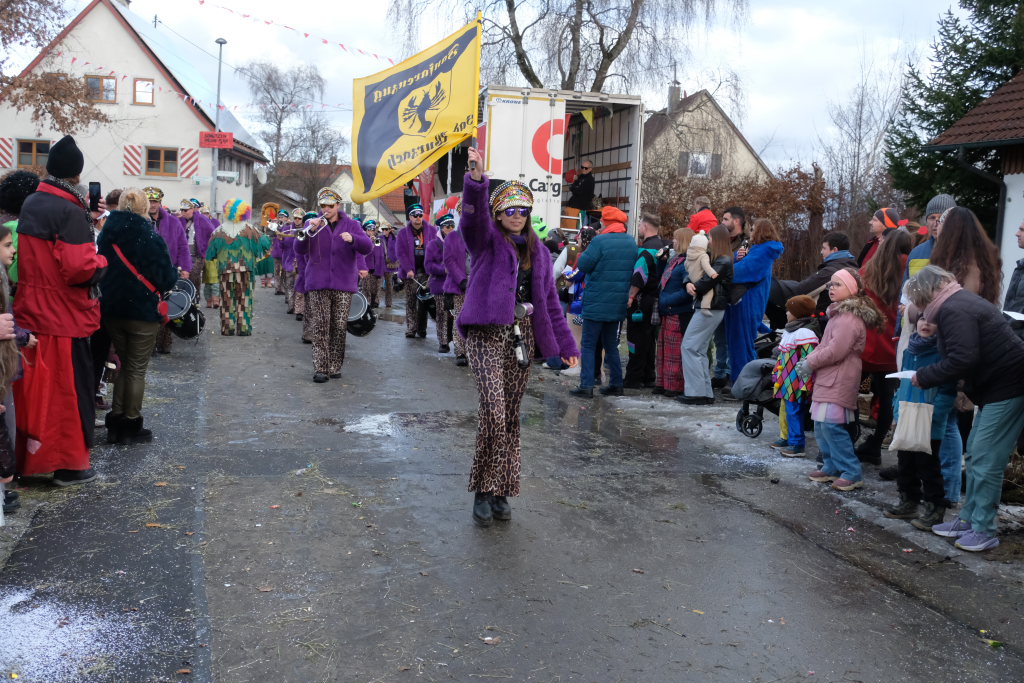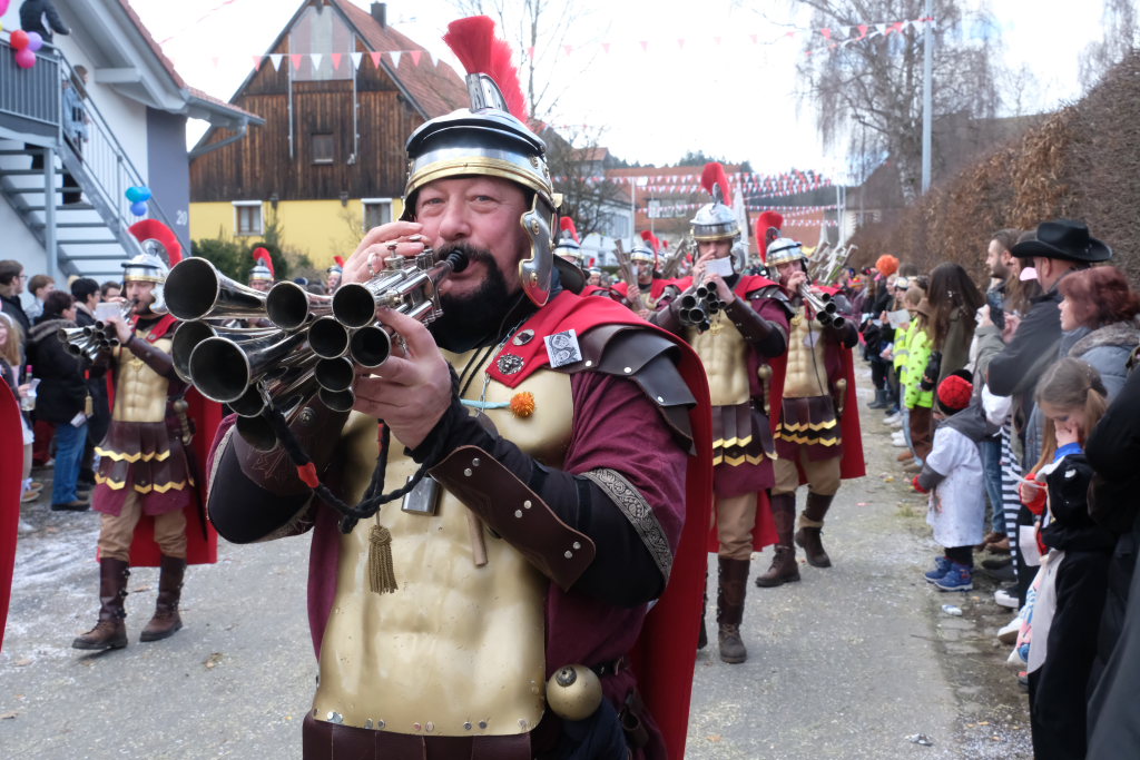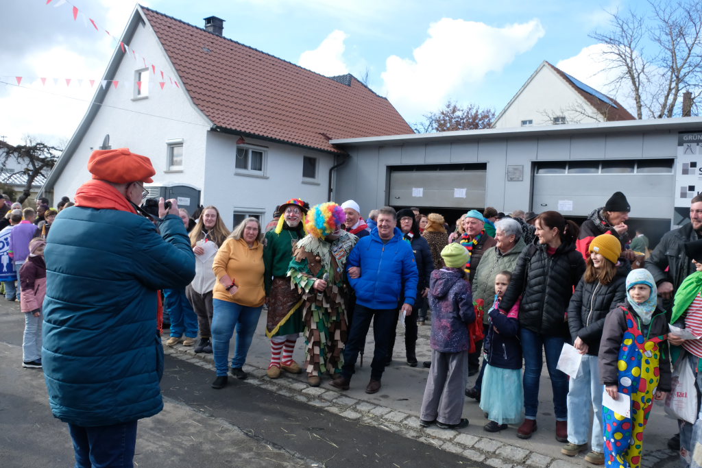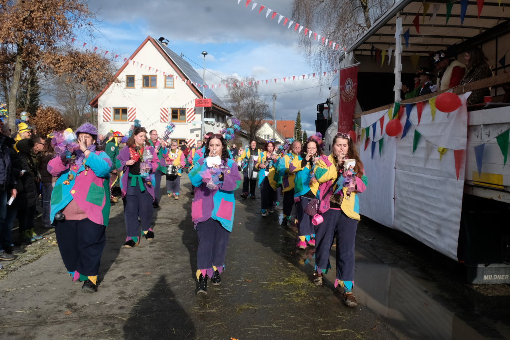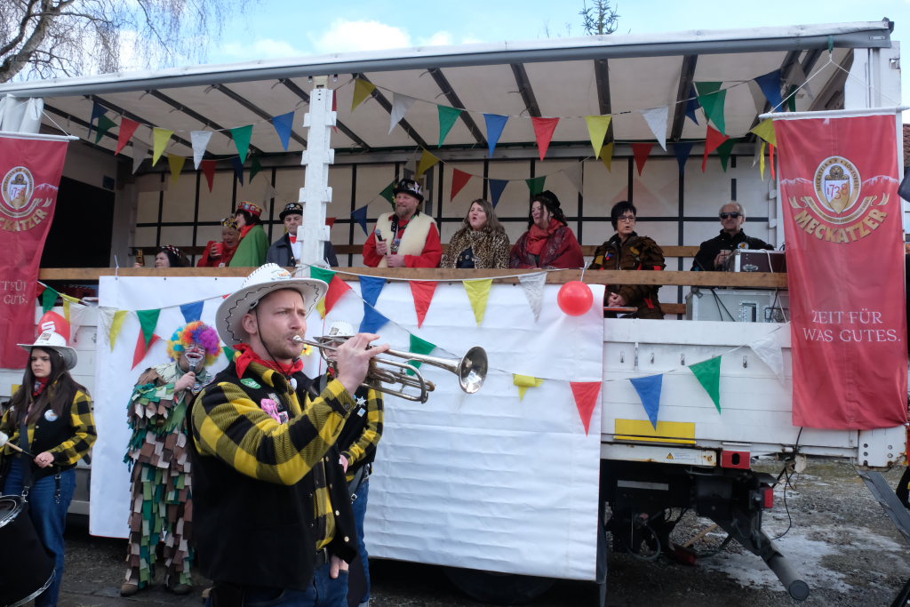 Haidgau – Beim diesjährigen Narrensprung haben die Verantwortlichen der Haidgauer Zunft bewusst die Bremse gezogen, nachdem beim Jubiläum im Vorjahr alle ANR-Zünfte eingeladen werden mussten. Mit 48 Umzugspositionen war er deutlich kürzer als im Vorjahr. Gleichgeblieben aber ist der hohe Unterhaltungswert, den Günther „Turbo“ Angele und Alex Wild – in diesem Jahr als Clowns getarnt – als Moderatoren und Ansagern den zahlreichen Besuchern und den Ehrengästen auf der zur Ehrentribüne umgestalteten LKW-Pritsche boten.