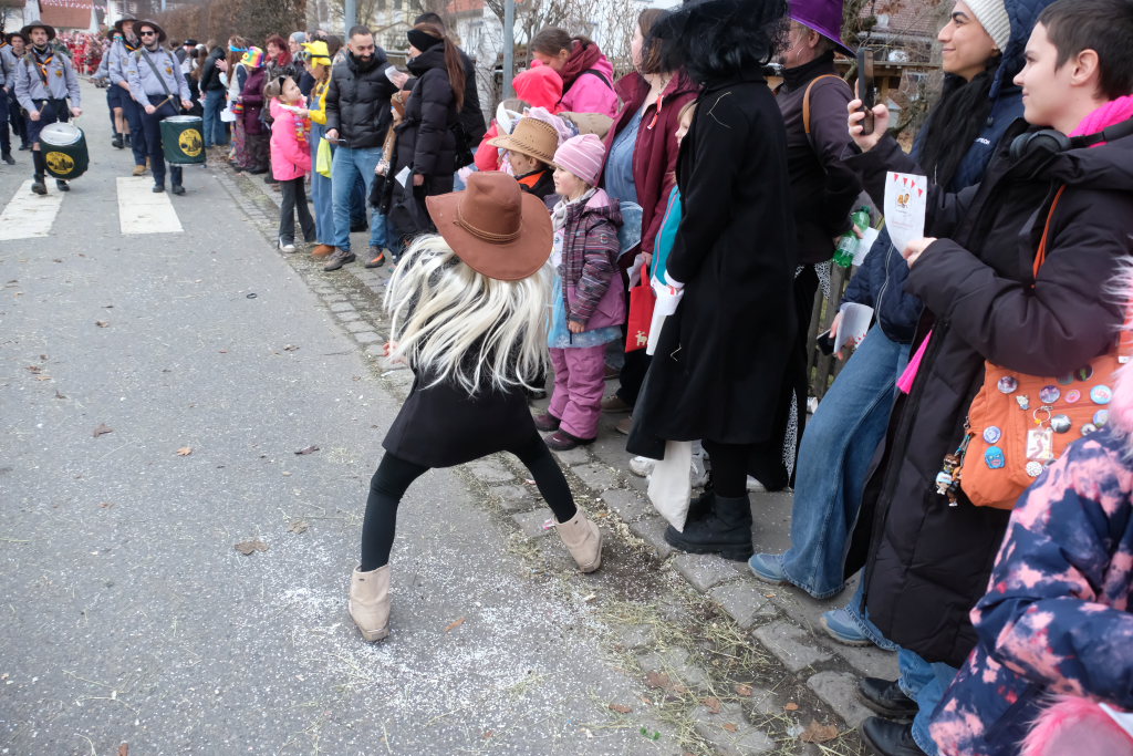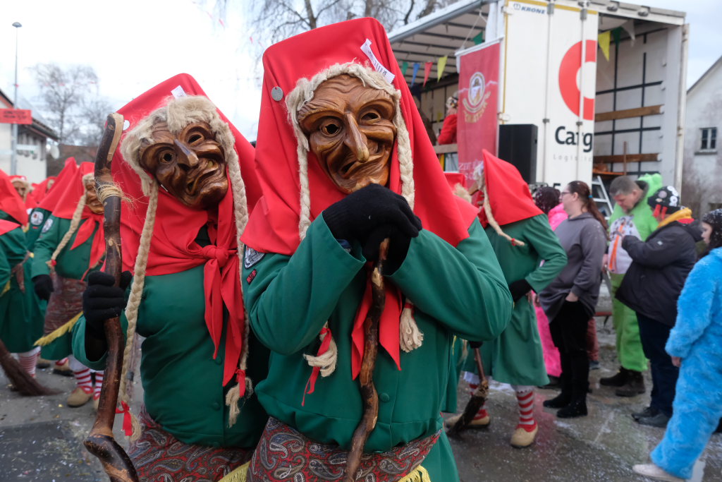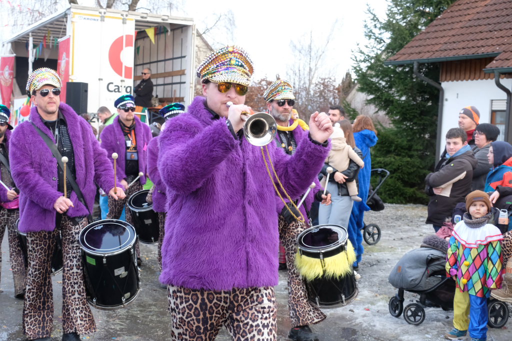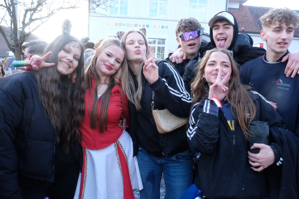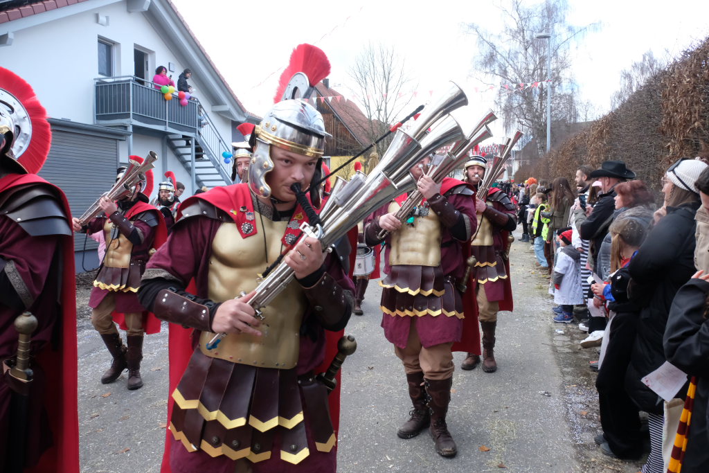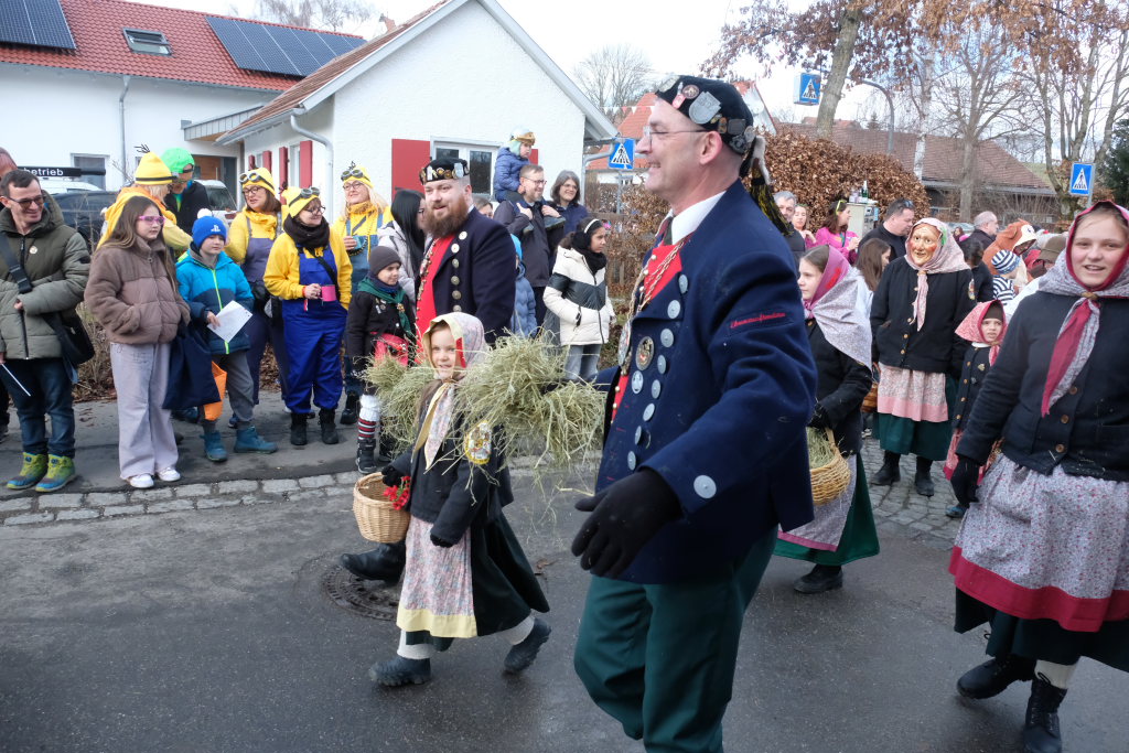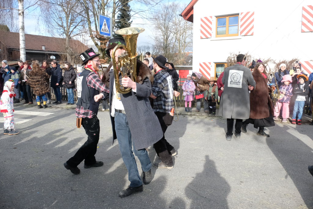 Pünktlich um 14.00 Uhr eröffnete die Musikkapelle Haidgau den Narrensprung gemeinsam mit Fahnenabordnung, Narrensamen, sowie Wachtmeister und Fasnetslader, den beiden besonderen Einzelfiguren der Haidgauer Zunft. Und noch eine weitere Gruppe aus der Ortschaft folgte ihnen: Die Kindergarten-Kinder von St. Nikolaus, deren Narrenruf bezeichnenderweise „Schrei-Hälse“ lautete.