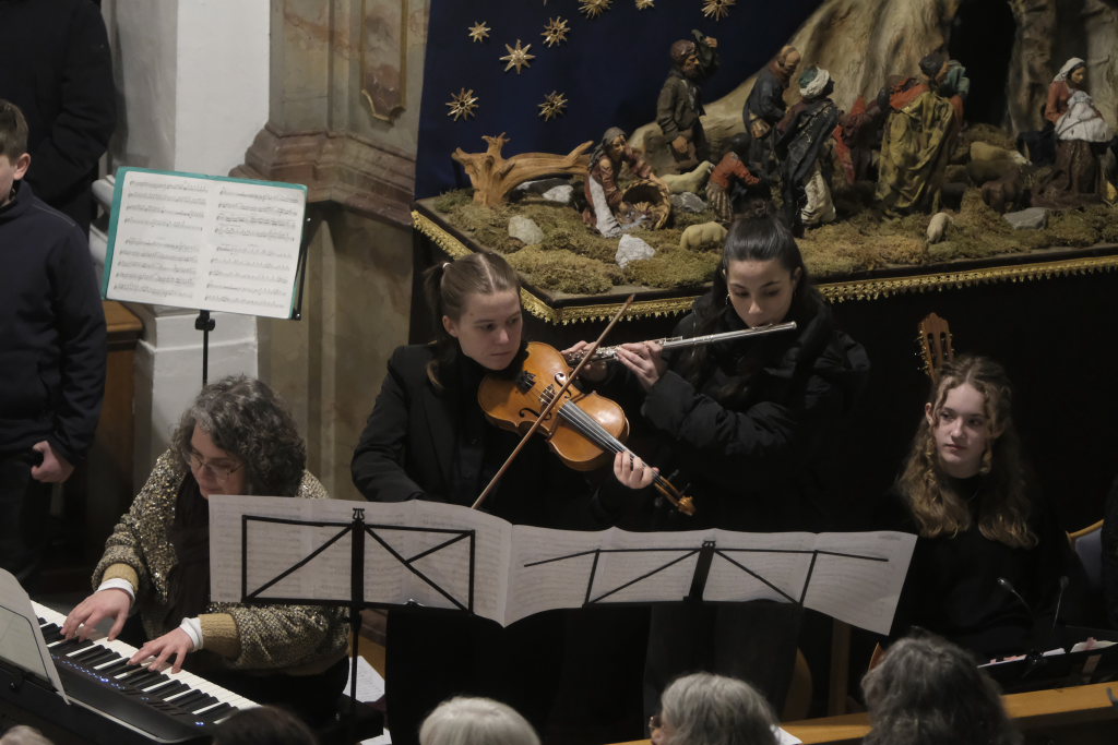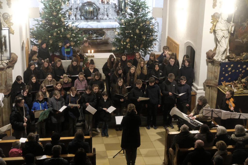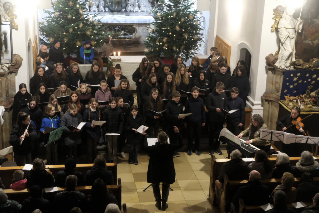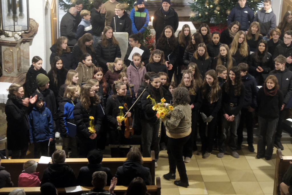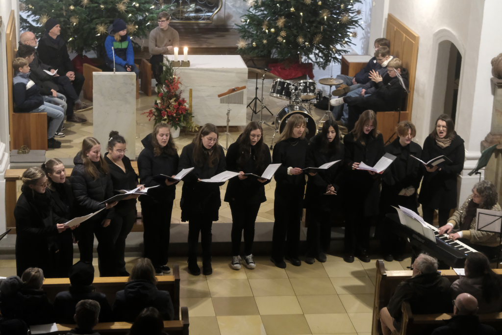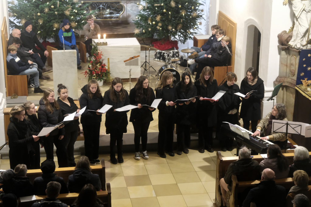Engelsgleiche Stimmen bot das Vokalensemble bei den beiden John Rutter Stücken „The Peace of God“ und „I will sing with the spirit“ sowie „Caresse sur l´ocean“ bei dem sich Elise Kazmeier und Hannah Gräber als Solistinnen auszeichnen konnten. Als drittes Stück hatte das Vokalensemble von John Rutter „I will sing with the spirit“ einstudiert. Auch „Aria“, das Anna Butscher mit ihrer Querflöte und Bernadette Vogt am Klavier danach präsentierten, stammt aus der Feder des englischen Komponisten und Dirigenten, der vor wenigen Monaten im benachbarten Rot an der Rot aus Anlass des Klosterjubiläums einen Auftritt hatte, ehe Schulleiter Klaus Amann einige Schlussworte zu dem Konzert und Pater Mariusz ein Gebet sprachen.
