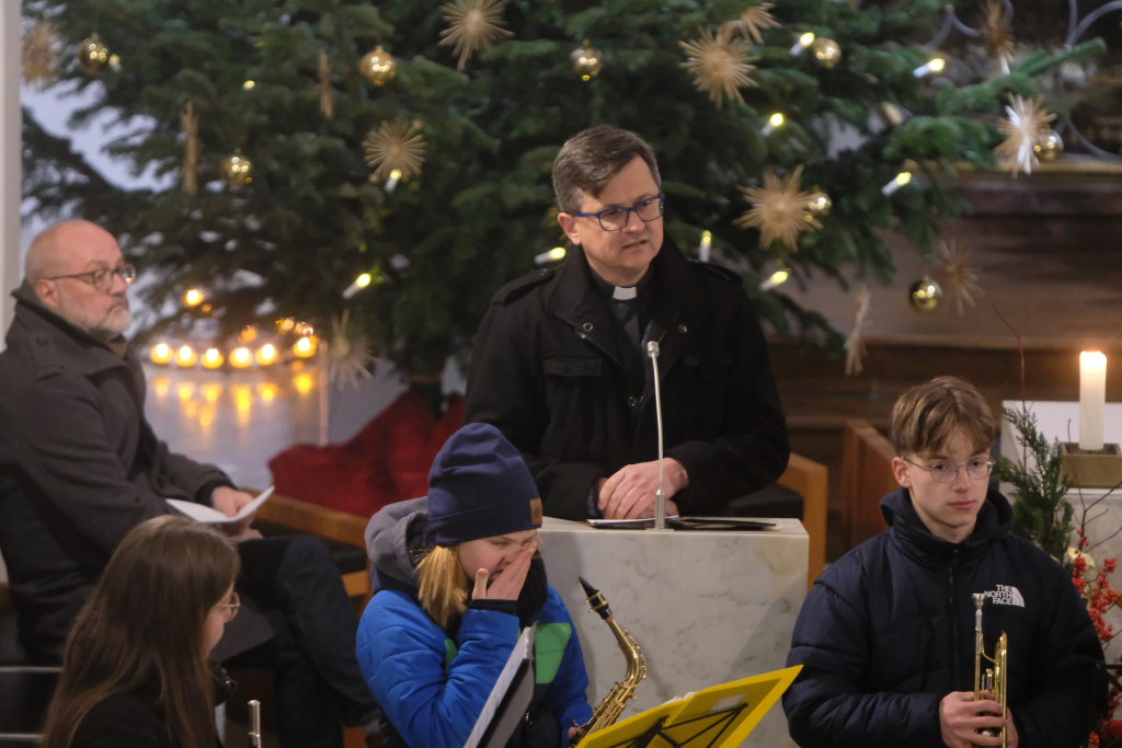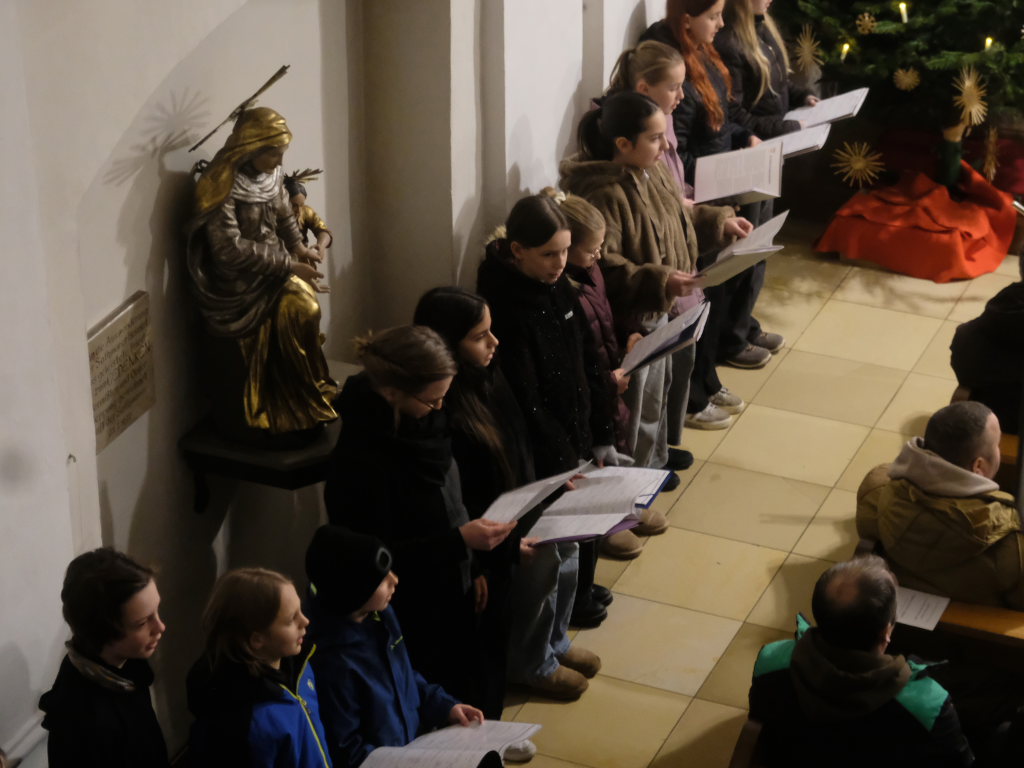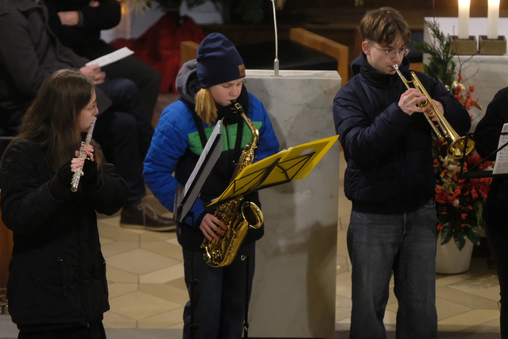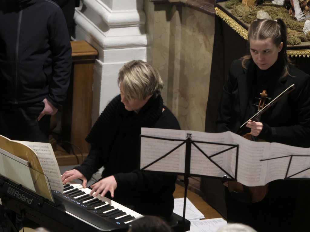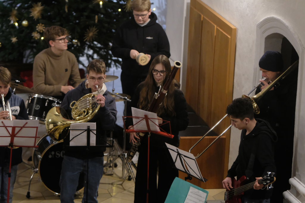 Engelsgleiche Stimmen bot das Vokalensemble bei den beiden John Rutter Stücken „The Peace of God“ und „I will sing with the spirit“ sowie „Caresse sur l´ocean“ bei dem sich Elise Kazmeier und Hannah Gräber als Solistinnen auszeichnen konnten. Als drittes Stück hatte das Vokalensemble von John Rutter „I will sing with the spirit“ einstudiert. Auch „Aria“, das Anna Butscher mit ihrer Querflöte und Bernadette Vogt am Klavier danach präsentierten, stammt aus der Feder des englischen Komponisten und Dirigenten, der vor wenigen Monaten im benachbarten Rot an der Rot aus Anlass des Klosterjubiläums einen Auftritt hatte, ehe Schulleiter Klaus Amann einige Schlussworte zu dem Konzert und Pater Mariusz ein Gebet sprachen.