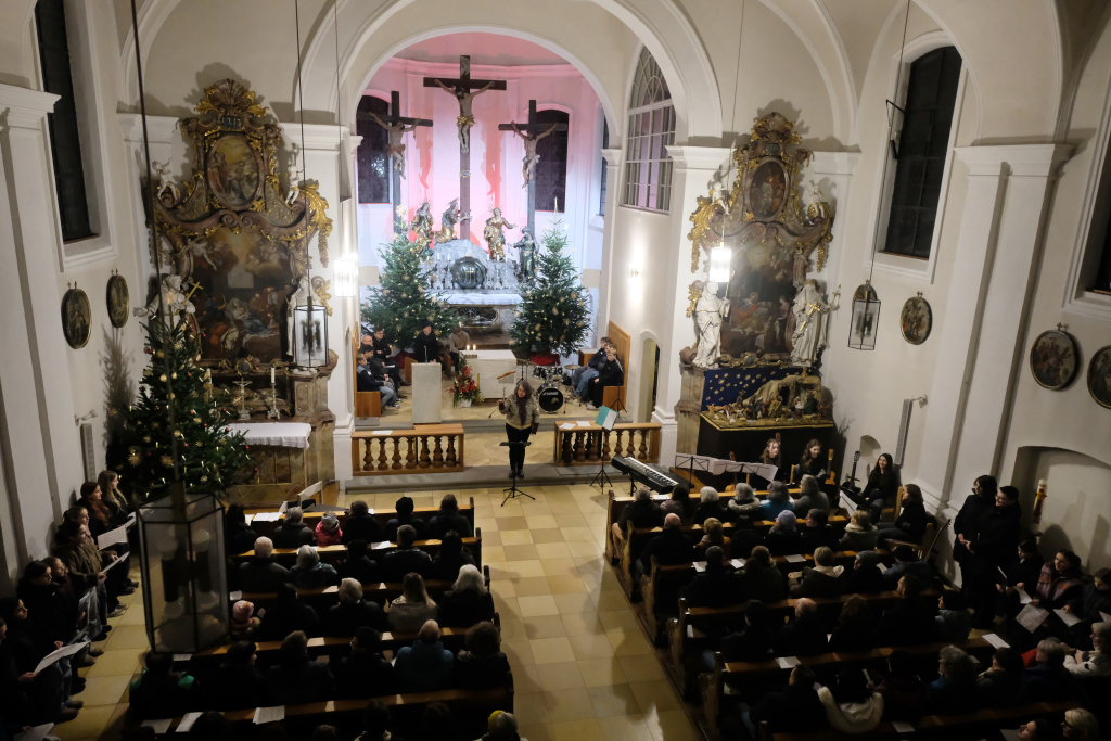 Bad Wurzach – Die Fachschaft Musik des Salvatorkollegs gab am Samstag, 24. Januar, ein gelungenes Konzert zum Jahreswechsel in der Wallfahrtskirche auf dem Gottesberg. Bläserensemble, Vokalensemble, Gitarrenquartett und Chor konzertierten gemeinsam mit schuleigenen Solisten mit Musik von Klassik über experimentell bis Pop.
