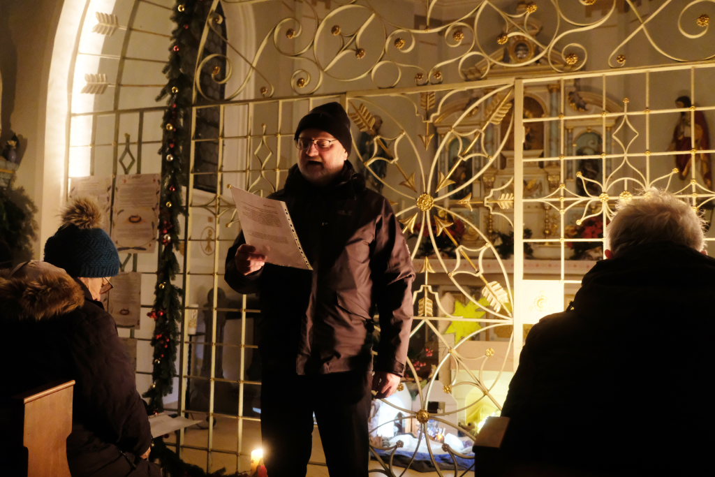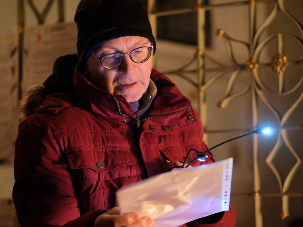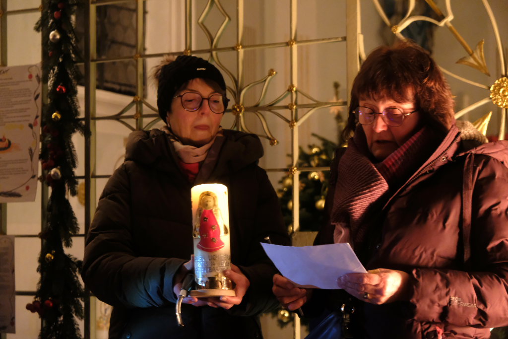 Es waren rund 16 Personen, welche die besinnlichen Texte mit vielen Zitaten von bekannten Pazifisten und prominenten Personen des öffentlichen Lebens vortrugen. Eröffnet wurde die Meditationsstunde in der vom Kerzenschein erleuchteten Wallfahrtskapelle Kapelle St. Sebastian mit dem gemeinsam gesungenen Gotteslob-Lied „Da berühren sich Himmel und Erde.“ Nach der Begrüßung wurde die Lichterweg-Kerze, die seit 2013 alljährlich während des Impulses brennt, für die Dauer der Meditation entzündet.