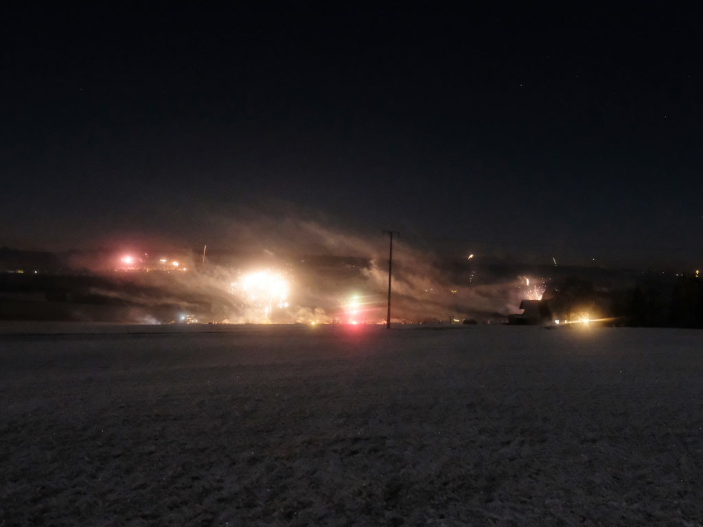Nach der von mehreren Liedern umrahmten Meditation machte sich die große Gruppe auf den Rückweg, um rechtzeitig zum Jahreswechsel am Waldrand freien Blick auf Haidgau, die Haid und Bad Wurzach zu haben, um dort auf das neue Jahr anzustoßen und die Feuerwerke an den verschiedenen Orten zu genießen.