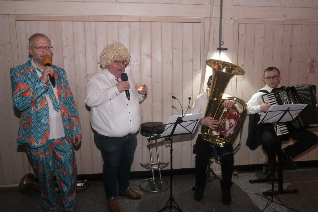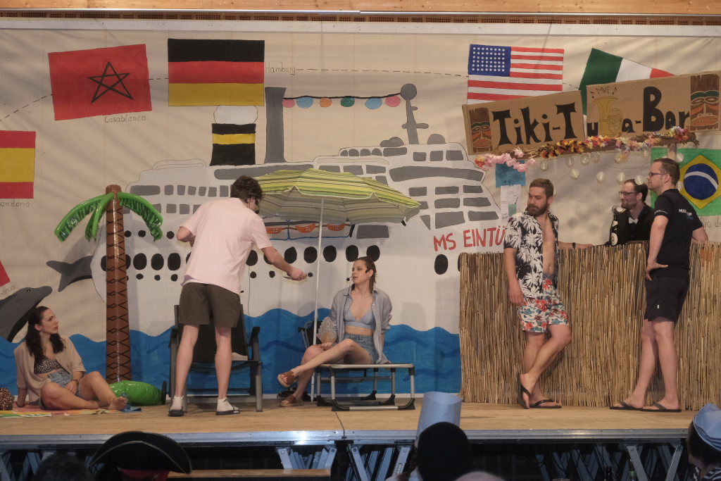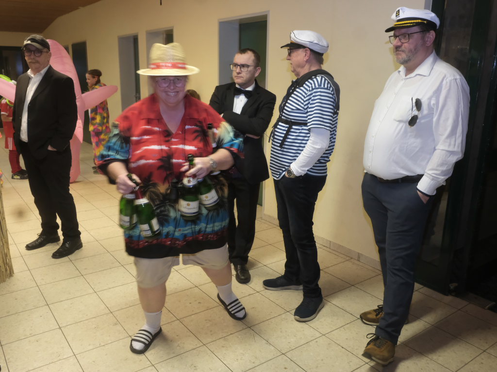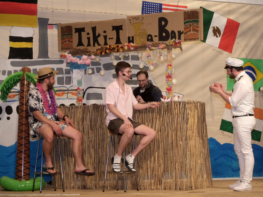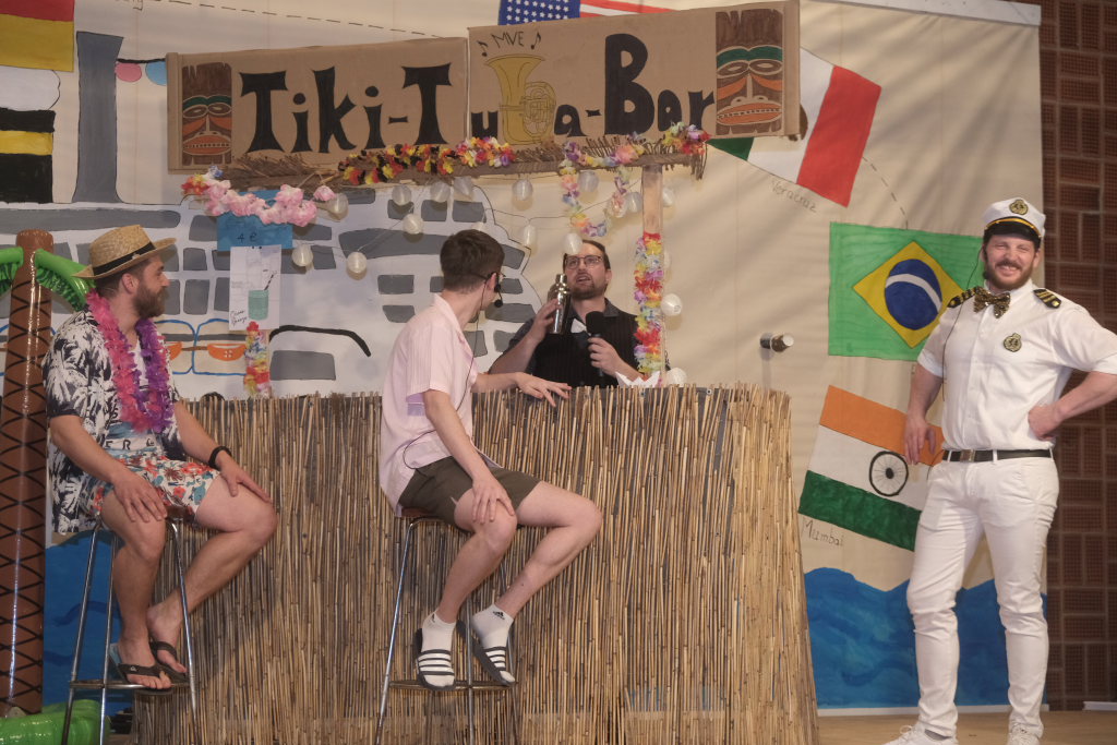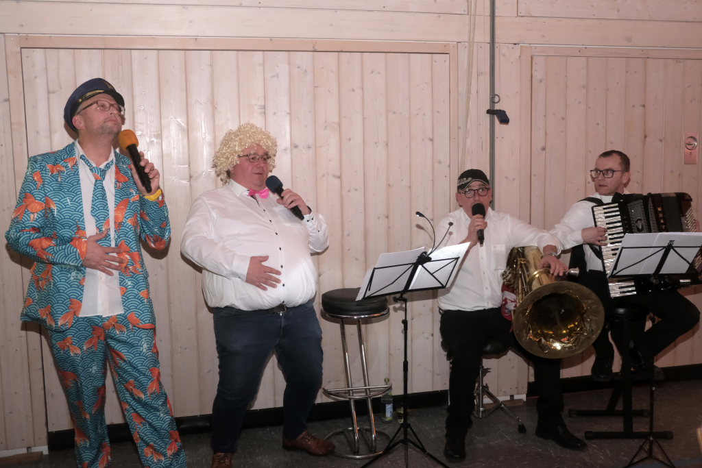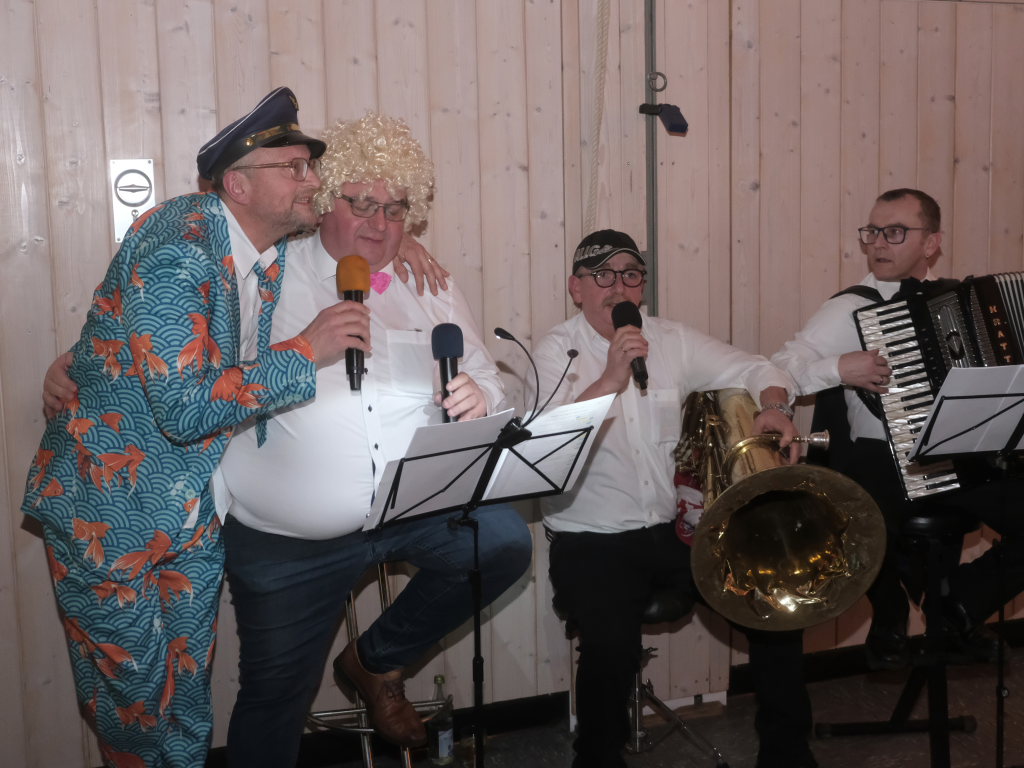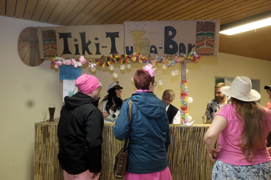 Auch bei diesem Musikball nicht fehlen durfte natürlich der obligatorische Stammtisch, der in diesem Jahr halt an der Tiki-Tuba-Bar an Board der MS Eintürnen stattfand. Florian Bott, Josef Schele, Elias Hengge und Markus Bendel als Barkeeper nahmen – bei Cocktails statt Bier – dabei wieder einige herausragende Ereignisse im Jahreslauf des Musikvereines Eintürnen aufs Korn. Etwa die Weigerung von Florian Weber, Nudeln ohne Zeitangabe zu kochen ( „Präzision bis zur Pasta“ nannten das die Stammtischbrüder). Oder sie berichteten davon, was für einen Glücksgriff Vorstand Thomas Stärk mit seiner ihm seit vergangenem Jahr angetrauten Daniela gemacht hat: Sie hatte ihm beim Wandertag nach einer missglückten Pfützen-Umgehung im Wald ohne zu zögern trockene Klamotten zum Rastplatz gebracht.