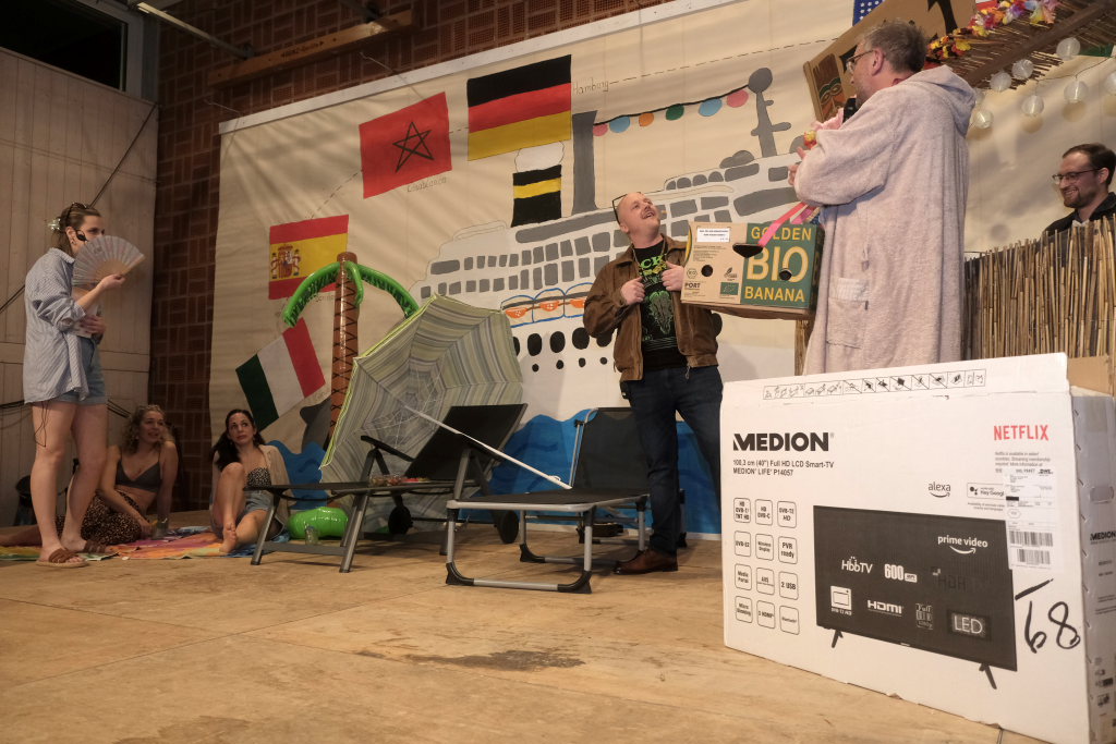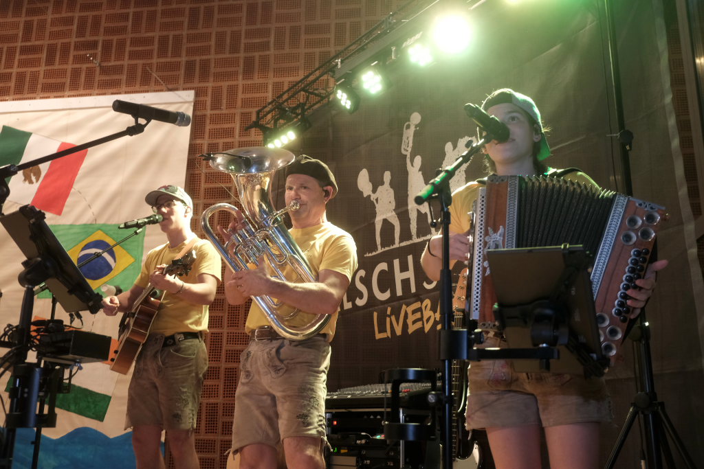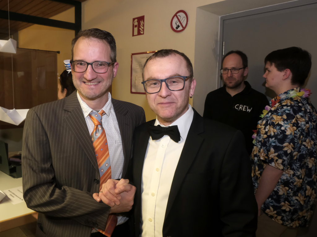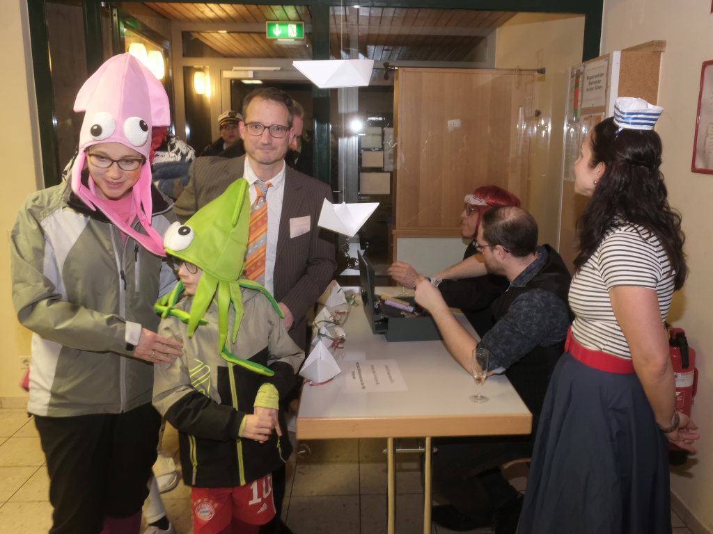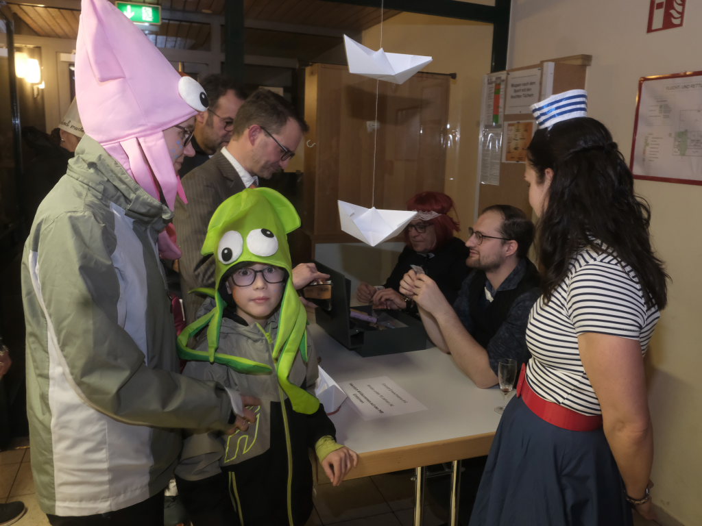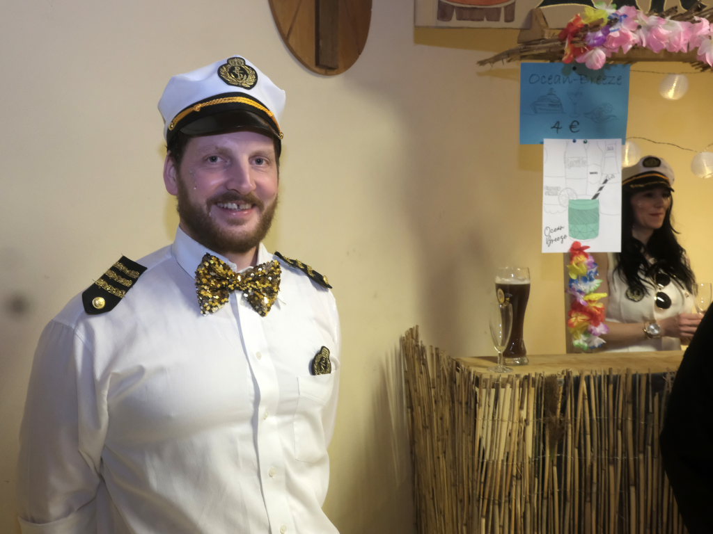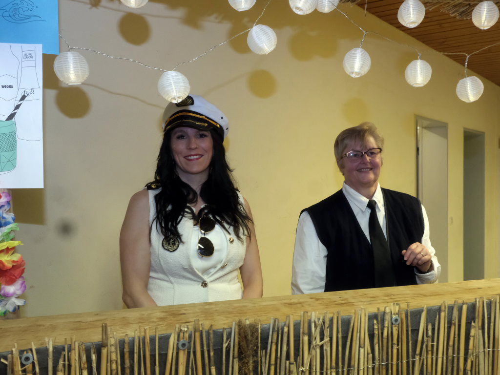 Auch bei diesem Musikball nicht fehlen durfte natürlich der obligatorische Stammtisch, der in diesem Jahr halt an der Tiki-Tuba-Bar an Board der MS Eintürnen stattfand. Florian Bott, Josef Schele, Elias Hengge und Markus Bendel als Barkeeper nahmen – bei Cocktails statt Bier – dabei wieder einige herausragende Ereignisse im Jahreslauf des Musikvereines Eintürnen aufs Korn. Etwa die Weigerung von Florian Weber, Nudeln ohne Zeitangabe zu kochen ( „Präzision bis zur Pasta“ nannten das die Stammtischbrüder). Oder sie berichteten davon, was für einen Glücksgriff Vorstand Thomas Stärk mit seiner ihm seit vergangenem Jahr angetrauten Daniela gemacht hat: Sie hatte ihm beim Wandertag nach einer missglückten Pfützen-Umgehung im Wald ohne zu zögern trockene Klamotten zum Rastplatz gebracht.