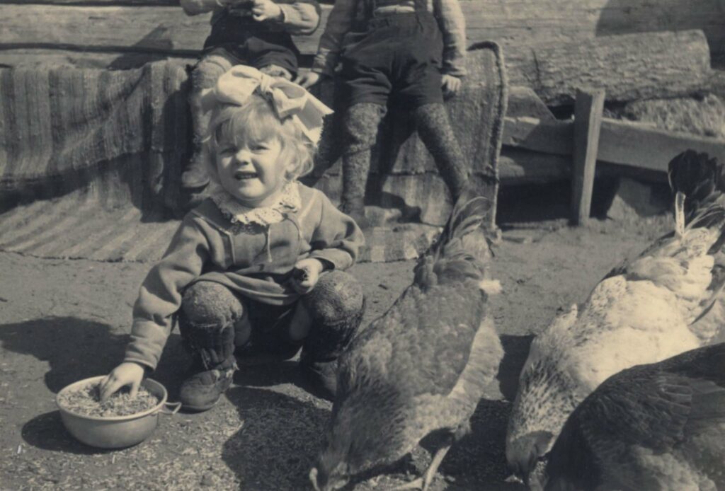 Sehnsucht Frieden: Diese Aufnahme von Albert Widmann zeigt ein russisches Mädchen beim Füttern der Hühner.