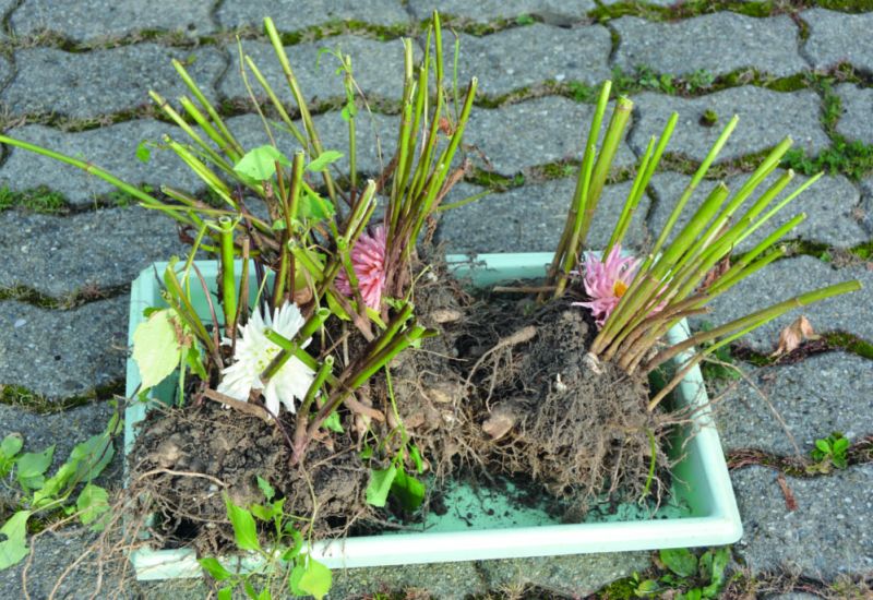Dahlienknollen gehören vor dem ersten Frost aus der Erde, um im Keller ihren Schönheitsschlaf halten zu können.