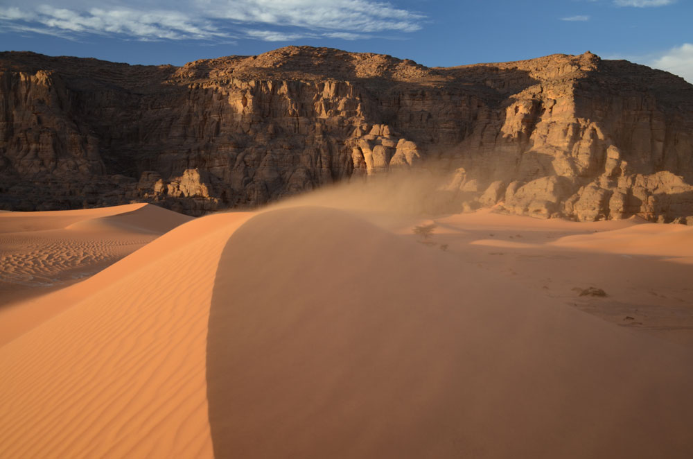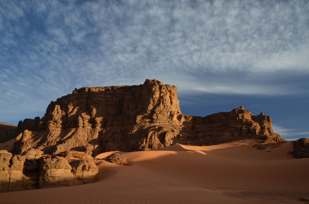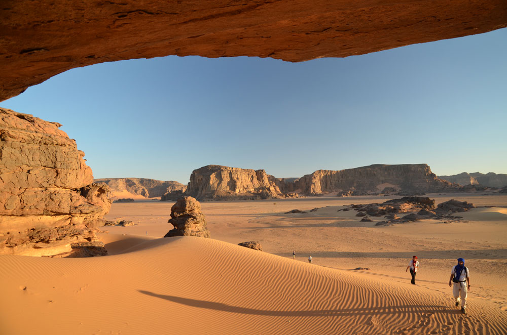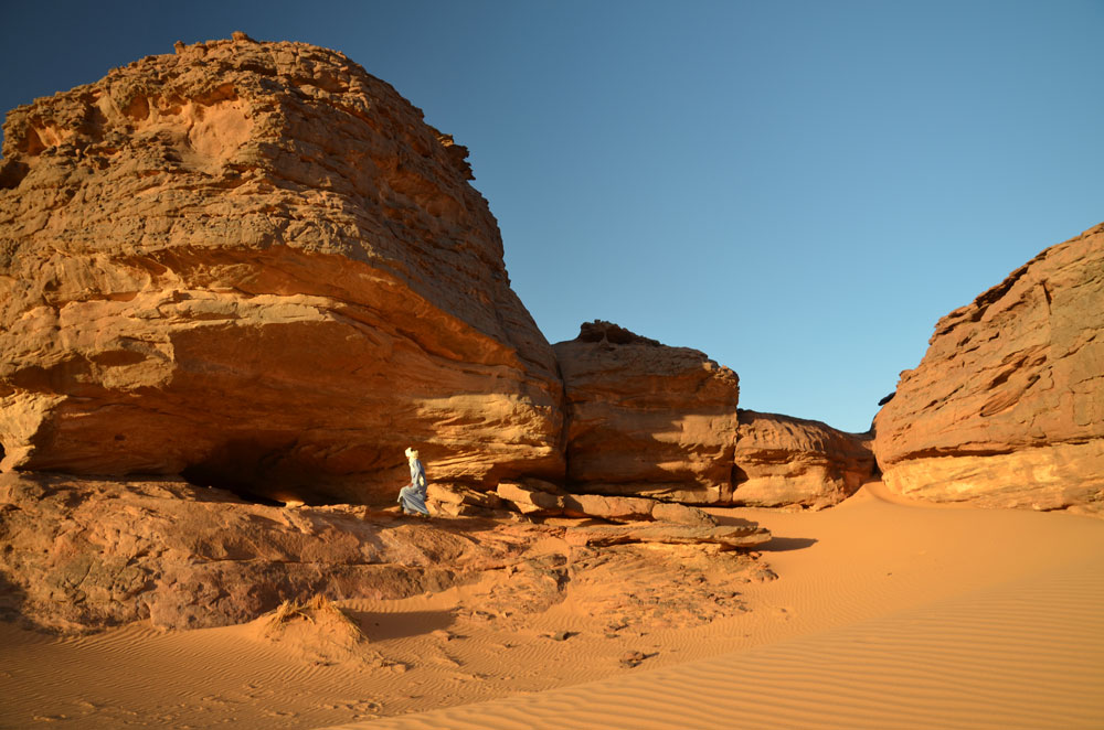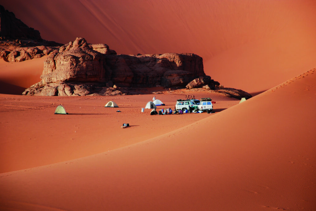 Etwas wehmütig sitze ich Mitte November auf einer dreihundert Meter hohen Düne im Tadrart, einer abgelegen Region westlich von Tamanrasset im Dreiländereck Algerien, Libyen und Niger. Algier, die Hauptstadt von Afrikas größtem Land, liegt über zweitausend Kilometer nördlich davon. Seit über vierzig Jahren reise ich immer wieder nach Algerien. Im eigenen VW-Bus, im Geländewagen oder später als tourguide für einen Münchner Trekkingreise-Veranstalter. Eine Nacht auf der Isomatte unter dem unglaublichen Sternenzelt der klaren Wüstennacht begeistert mich mehr als jedes Sterne-Hotel der Welt. Wanderungen zwischen den Felstürmen des Tassili n’Ajjer, im fast dreitausend Meter hohen Hoggar-Gebirge oder einer der weiten Sandlandschaften sind immer wieder ein großartiges Erlebnis. Die Gespräche mit Mitreisenden am mühsam mit spärlichem unterwegs gesammeltem Akazienholz entfachten Feuerchen, auf dem die Tuareg auch ihren süßen Tee kochen, bleiben oft lange im Gedächtnis. Es ist wohl auch kein Zufall, dass die großen monotheistischen Weltreligionen Judentum, Christentum und Islam in der Wüste entstanden sind.