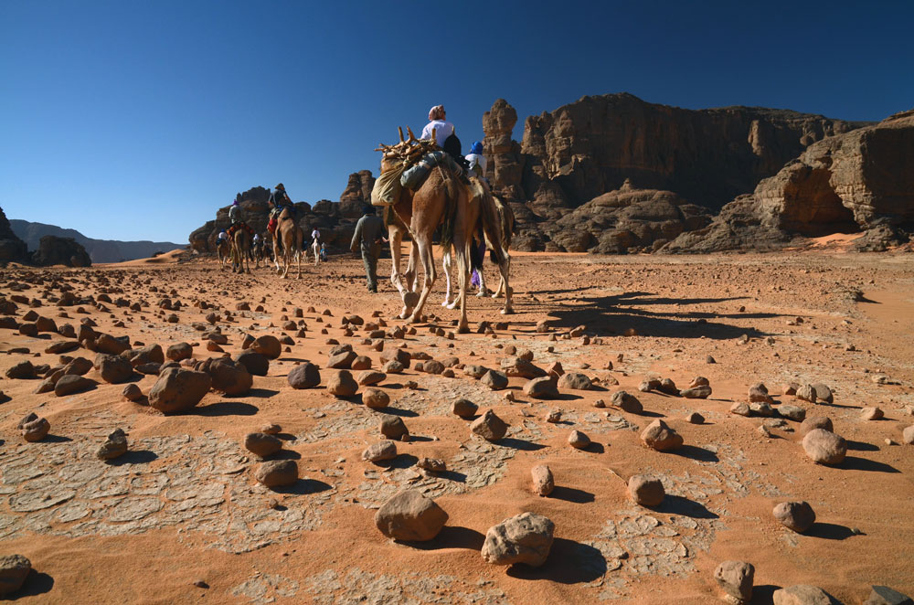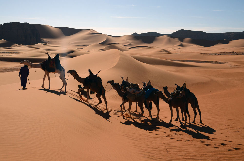 Ein Sprichwort der Tuareg weiß: Gott hat die Länder mit viel Wasser geschaffen, damit die Menschen dort leben können und die Wüsten, damit sie dort ihre Seele finden. Die nomadischen Wüstenbewohner kennen am besten seit Jahrhunderten das harte Leben in den unfruchtbaren Regionen Nordafrikas und dennoch lieben sie es. Die Zeit der Karawanen ist längst vorbei und die meisten Tuareg sind sesshaft geworden, doch manche begleiten Reisende durch die Wüste. Als Wanderführer, Kameltreiber, Koch oder Geländewagen-Fahrer.