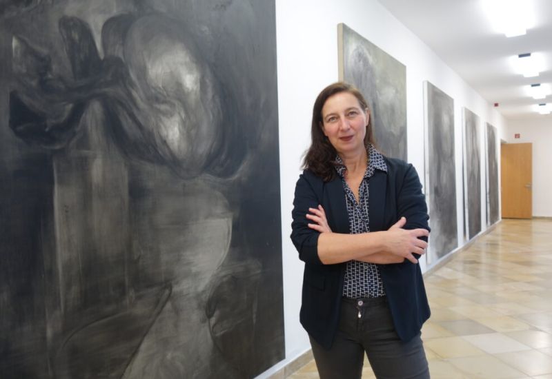 Einen Raum weiter können die Besucher zumindest medial vermittelt mit einem Film einen Blick in ihr Atelier in Wassers bei Wolfegg werfen. Hier lebt die Künstlerin in einem mit viel Respekt vor dem Gebäude und seinen Erbauern sanierten alten Bauernhaus, inmitten eines naturnahen Gartens. Filmisch nähert sich die Besucherin oder der Besucher hier Nähers Verständnis von Kunst. Nach dem Ausbruch des Krieges in der Ukraine konnte sie tagelang nicht malen, erzählt sie dort. Doch dann sei das Bild zu ihr gekommen. Sie verlieh dem Krieg in einem von Kälte, Hunger, Respektlosigkeit und Gewalt gezeichneten Hund vor einer riesigen Landschaft einen Ausdruck. Das geht unter die Haut. „Niemandsland“, der Titel der Ausstellung, ist das Terrain dieses kreativen Prozesses, in dem Gefühl zur Idee, die Idee zum Bild wird, und gleichzeitig ist es eine Aufforderung an Besucherin und Besucher, sich beim Schauen darauf einzulassen.