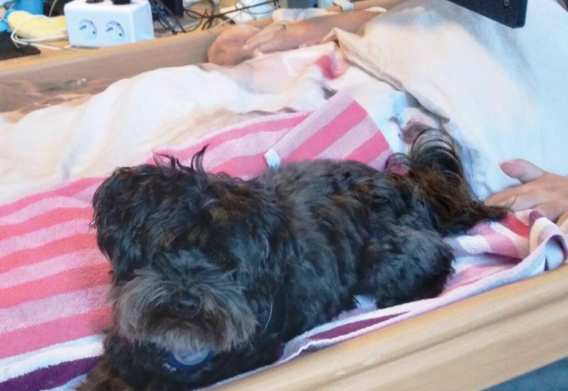 Die gemeinsamen Stunden sind ein Leben abseits des üblichen. Sie sind nicht immer leicht, oft sehr schwer und kaum auszuhalten, aber immer bereichernd. Monika B. hat zwei kleine Hunde, Bolonka Zwetna, die sie immer wieder mitbringt. „Volker liebt Tiere und freut sich immer, wenn Felix und Senja dabei sind. Dann strahlt er, sucht sie mit den Augen, freut sich sichtlich. Schon wenn wir kommen, hört er die kleinen Pfoten auf dem Boden und sieht sie in seinem Zimmer herumlaufen. Leider kann er sie nicht streicheln.“