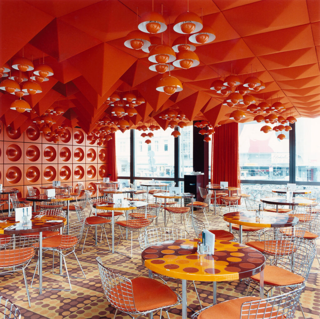 In der Ausstellung zu sehen ist auch die „Spiegelkantine V, 2000, Chromogener Farbabzug von Candida Höfer. Sie fotografierte die Mitarbeiterkantine im Spiegel-Verlagsgebäude in ihrer üblichen Sachlichkeit, menschenleer. Die Kantine wurde 1969, wie das gesamte Gebäude, vom dänischen Designer Verner Panton gestaltet, der für seine poppig-psychedelischen Innenräume bekannt war. Die Farben sind typisch für die 1960er Jahre. Dreißig Jahre später befanden sich nur noch die Kantine und die Snackbar im Originalzustand und wurden unter Denkmalschutz gestellt. Seit 2012 ist die Kantine Teil der Dauerausstellung des Museums für Kunst und Gewerbe Hamburg.