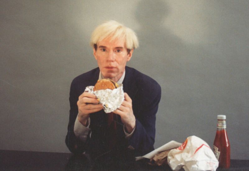 Auch Pop Art Künstler, allen voran Andy Warhol, holen Alltägliches in ihre Kunst. Sie beschäftigen sich allerdings mit Massenkonsum und industriellen Produkten. Zu sehen ist „Andy Warhol eating a hamburger“ von Jørgen Leth aus: 66 secenes from America, 1982. Es ist eine schmucklose Bildkomposition, die Andy Warhol zeigt, wie er schüchtern und blass seinen Hamburger verzehrt. Anschließend steckt er die Verpackung wieder in die Tüte, wartet, und verkündet schließlich: „My name is Andy Warhol, and I just finished eating a hamburger“.