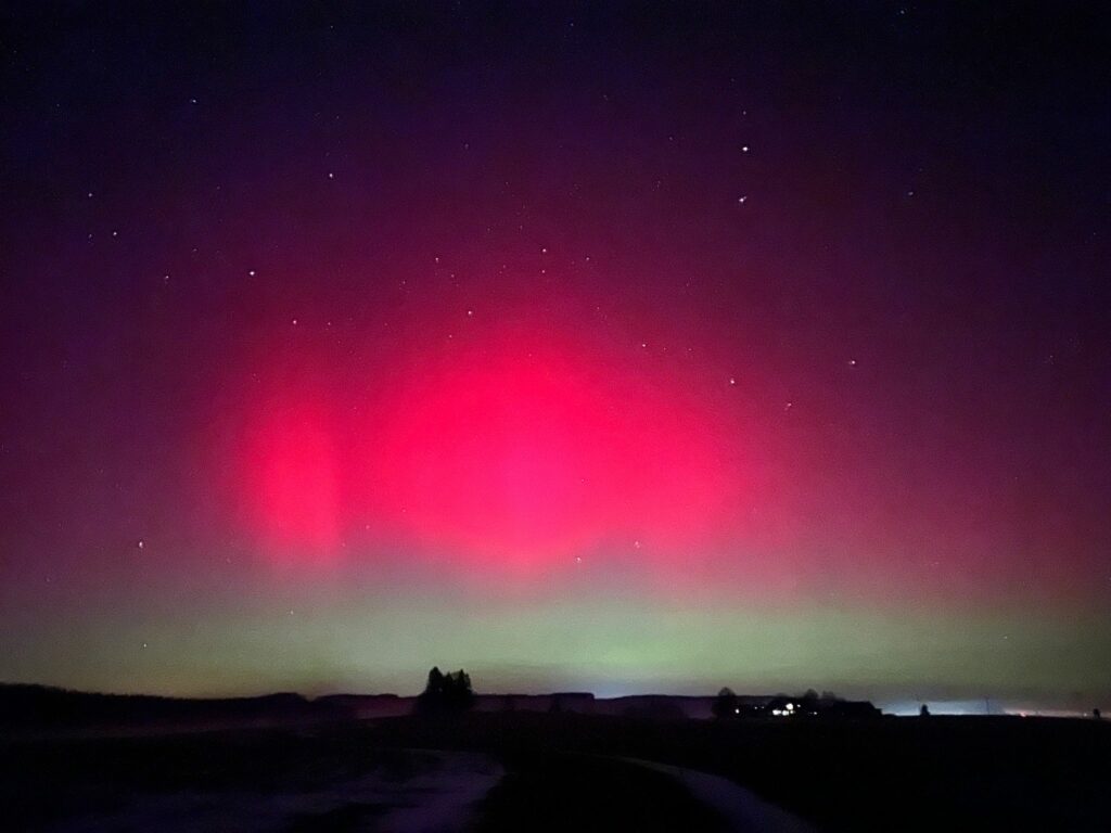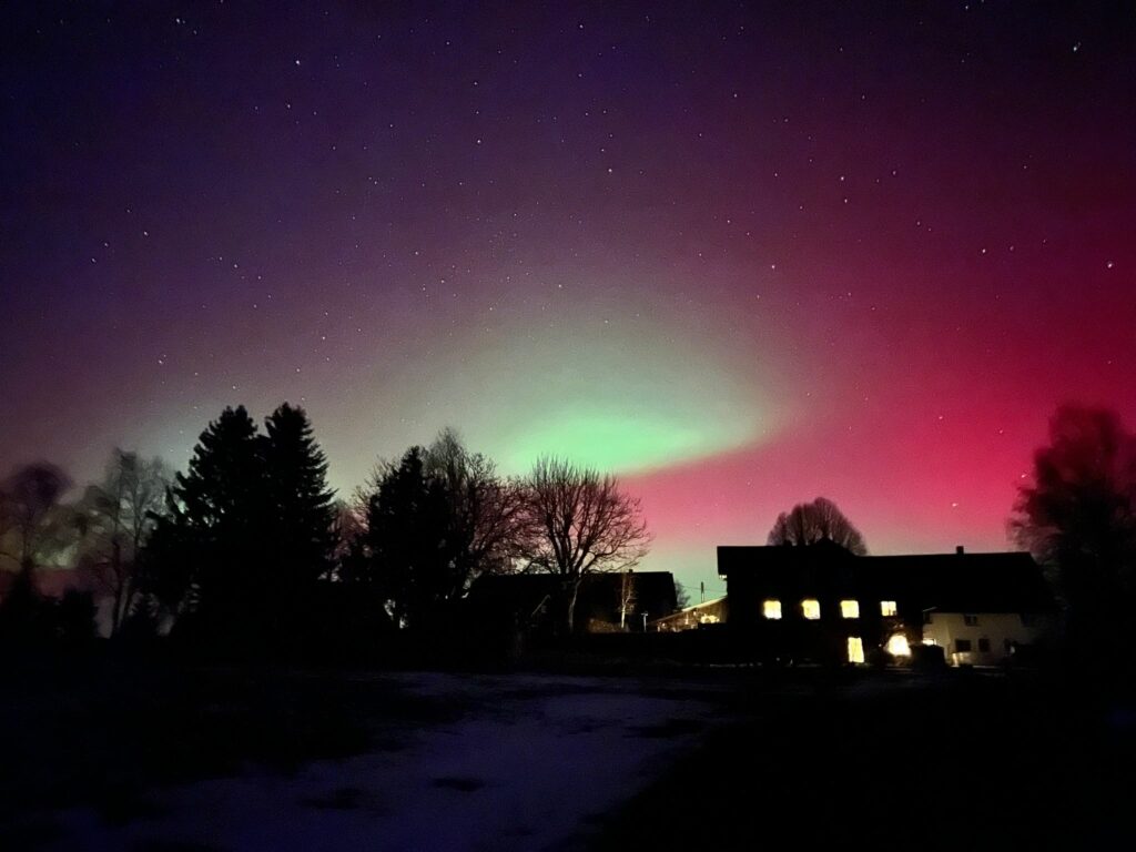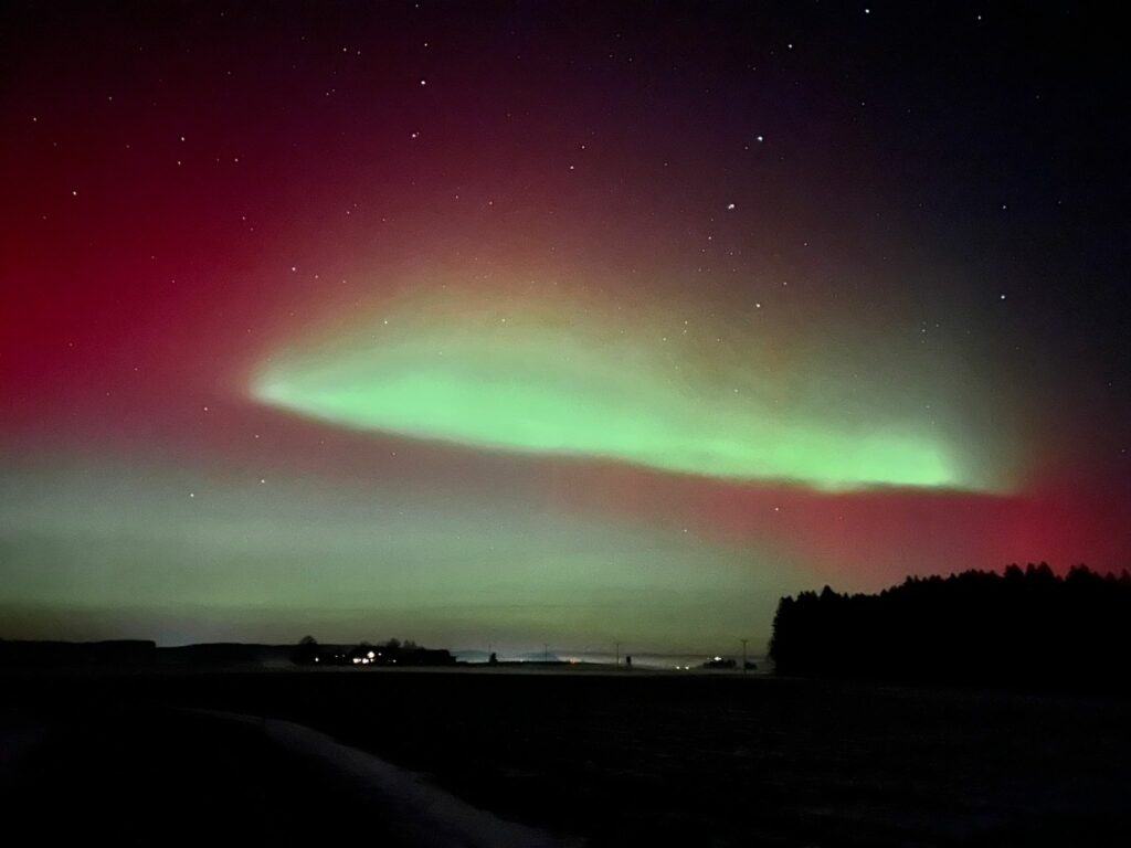 Immenried – Wie an vielen Orten in Deutschland, so auch im württembergischen Allgäu: In der Nacht von Montag auf Dienstag war am Himmel ein sogenanntes Polarlicht zu sehen. Unsere Leserin Sibylle Emmerling hat uns Aufnahmen geschickt, die sie am 19. Januar um 23.30 Uhr von Oberreute Richtung Immenried gemacht hat.