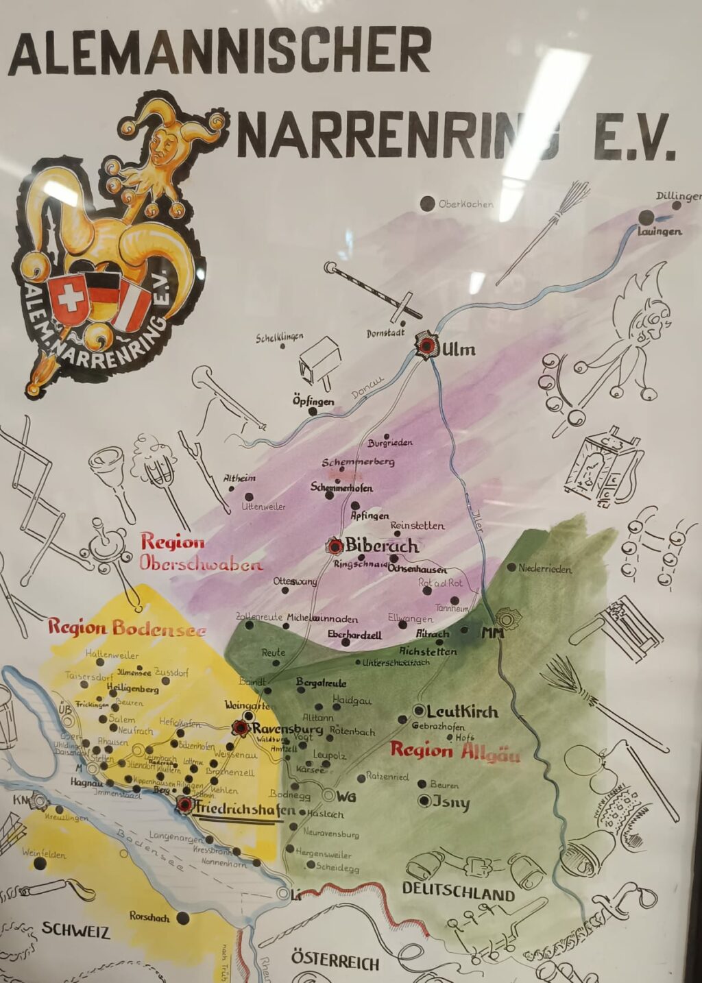 Andere Figuren beziehen sich auf Personen oder Geschehnisse aus der Geschichte der jeweiligen Gemeinde. So leitet sich etwa die Figur des Berengar, die Herbert Mayer 1993 für die Narrenzunft in Bergatreute entwarf, von einer historischen Gestalt des 16. Jahrhunderts her. Aber man begegnet auch Überraschendem. So gibt es zum Beispiel in Gebrazhofen eine Gruppe von großen Schwellköpfen, die Gebrazhofer Dickköpfe. Die Anregung für solche Figuren kam ursprünglich vom Karneval in Nizza. Und in Bodnegg sind die Masken weder aus Holz noch aus Gips oder Pappmachee, sondern werden aus Brotteig gebacken.