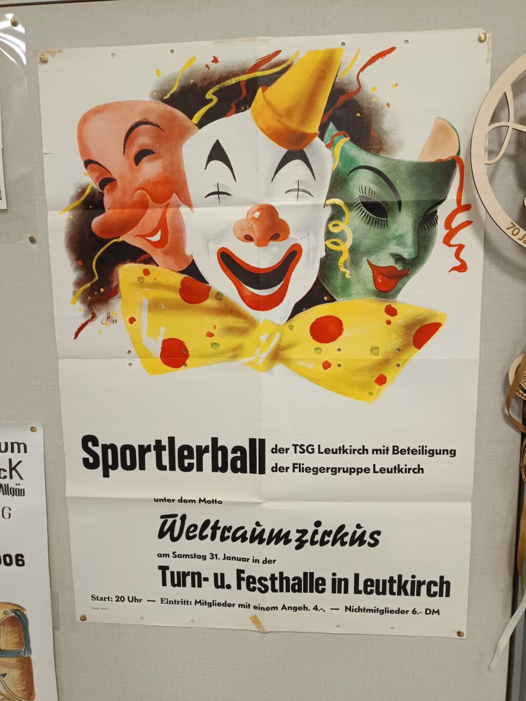 Aber es geht auch manches verloren. Zum Beispiel macht sich heute niemand mehr die Mühe, eine Narrenzeitung zusammenzustellen, in der die Ereignisse des abgelaufenen Jahres aufs Korn genommen werden. Diese aufwändig gemachten Blättchen, die teilweise der regulären Tageszeitung beilagen, gehörten lange Zeit unverzichtbar zur Fasnet. In der Ausstellung liegen zwei schöne Beispiele zum Durchblättern aus: eine Zeitung aus dem Jahr 1939 und ein Exemplar der einst legendären „Leutkircher Stadtbrille“ aus dem 19. Jahrhundert. Auch die Ballsaison ist heute nicht mehr so opulent, wie sie gerade in den ersten Jahrzehnten der Nibelgau-Zunft war. 1956 hatte man zum Beispiel die berühmte Opernsängerin und populäre Filmschauspielerin Renate Holm als Patin für die Leutkircher Fasnet gewinnen können. Heute sind dagegen einst äußerst beliebte Veranstaltungsformate wie etwa der Lumpenball oder der Hofball verschwunden. Die das jeweilige Jahresmotto aufgreifenden prächtigen Dekorationen der Stadthalle sind bis heute ein Markenzeichen der Leutkircher Fasnet. Allerdings wurde auch hier anfangs ein ungeheurer Aufwand getrieben, der heute nicht mehr zu leisten wäre.