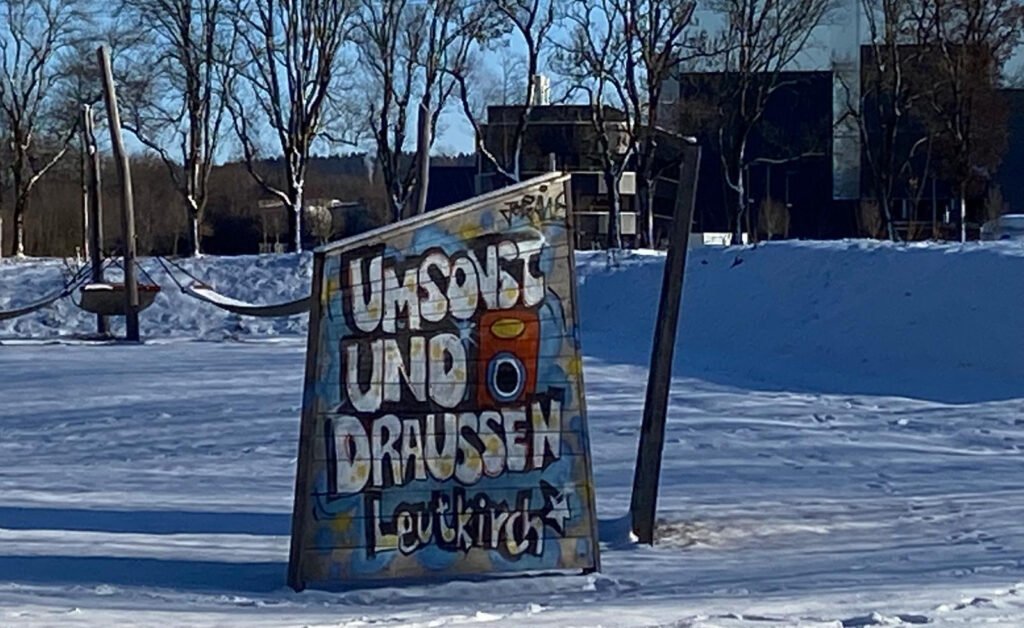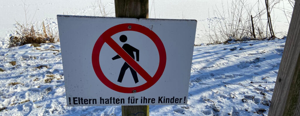 Leutkirch – „Betreten des Stadtweihers verboten! Lebensgefahr!“ Dieses Schild – und vieles mehr – kann sehen, wer das derzeit kalte, teils sonnenklare Wetter zu einem Spaziergang um den Stadtweiher nutzt. Parkplätze dafür bieten sich unter anderem am Freibad an. Bildschirmzeitungsreporter Julian Aicher drehte am Sonntagnachmittag (4.1.) mit seiner Frau eine Runde um das Gewässer. Dabei kam das Paar an einer Feuerwehrübung auf dem Weiher-Eis vorbei. Nähe Uferdamm. Es sah spannend aus, weil sich einige Floriansjünger aufs Eis wagten – gesichert von einer Feuerwehrleiter. „Das war eine Übung“, hieß es von der Freiwilligen Feuerwehr Leutkirch.