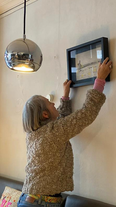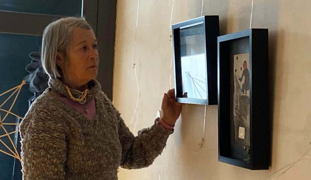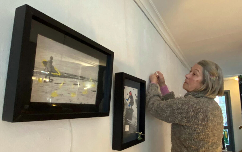 Monika Titelius beim Aufhängen ihrer Objekte am 2. Januar im „Drops“.