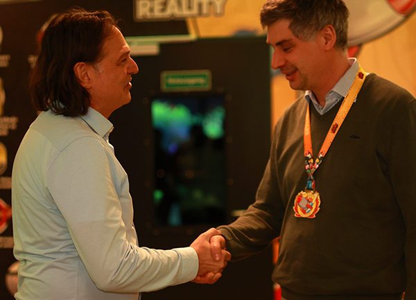 Auch OB Henle erhielt von den BattleKart-Leuten eine bunte Medaille.