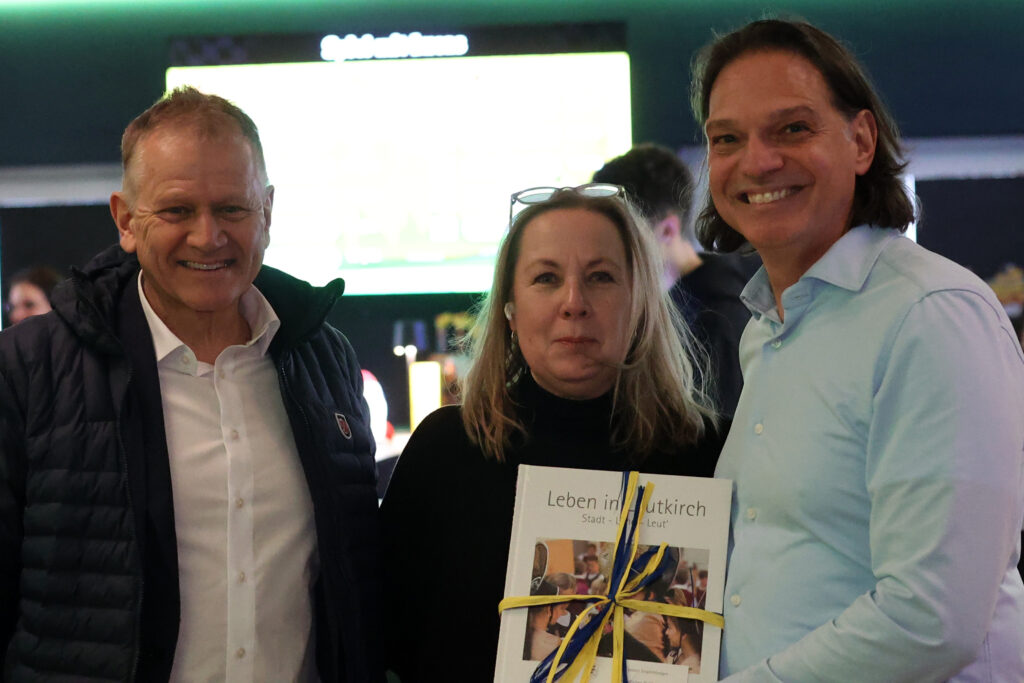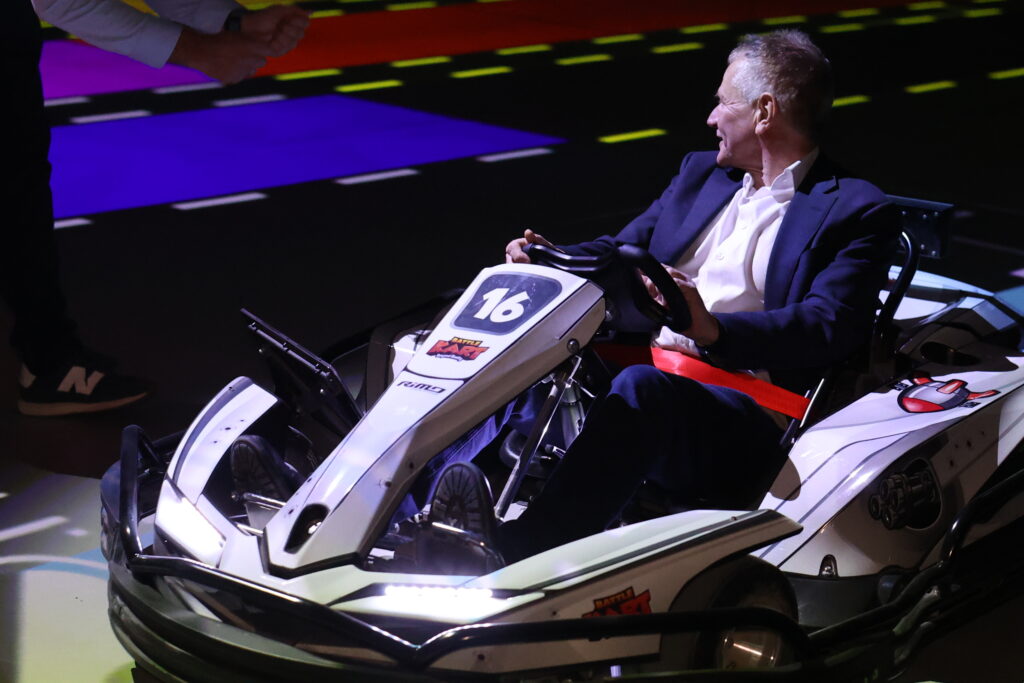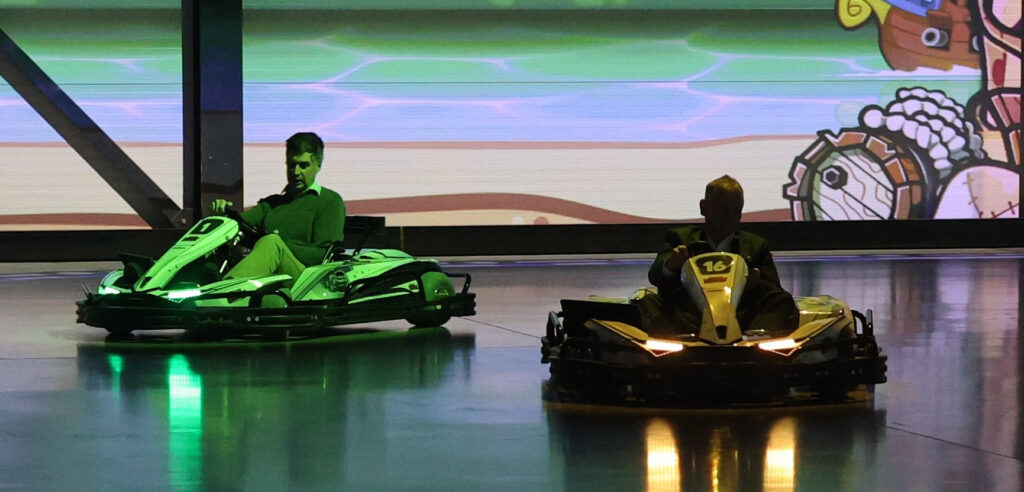 Standortleiter Toni Stefanovski und die deutsche BattleKart-Managerin Kathrin Pietsch (hier mit OB Henle) begrüßten zur Eröffnung zahlreiche Gemeinderäte und Ortsvorsteher – und natürlich durften alle Gäste selbst ins Kart steigen.