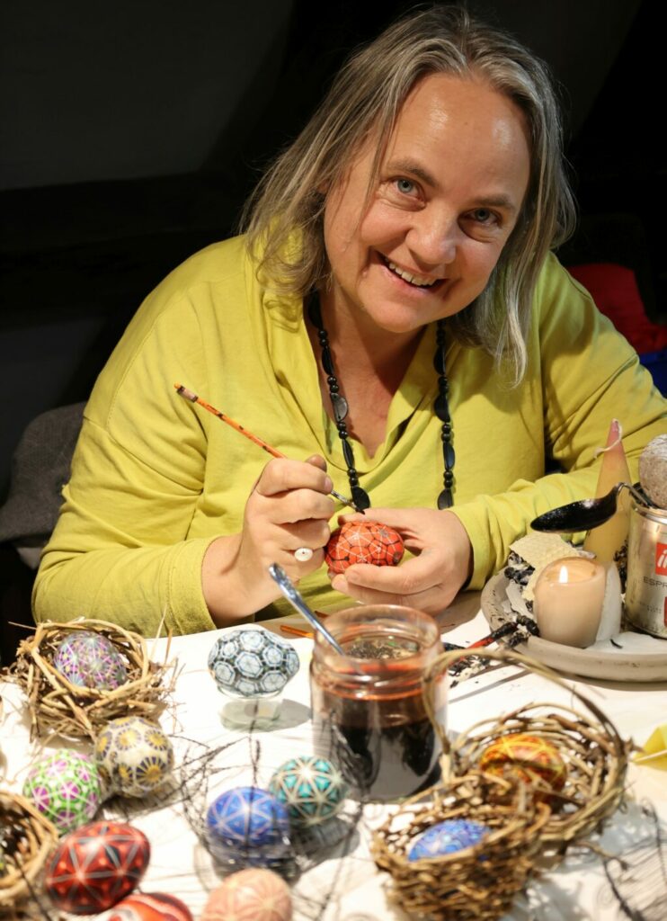 Martina Veit fertigt moderne Batik-Ostereier an. Foto: Susanne Müller